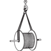 Sektioner av lina som går genom linskivor av stål och/eller spolning i ett lager på lintrumma