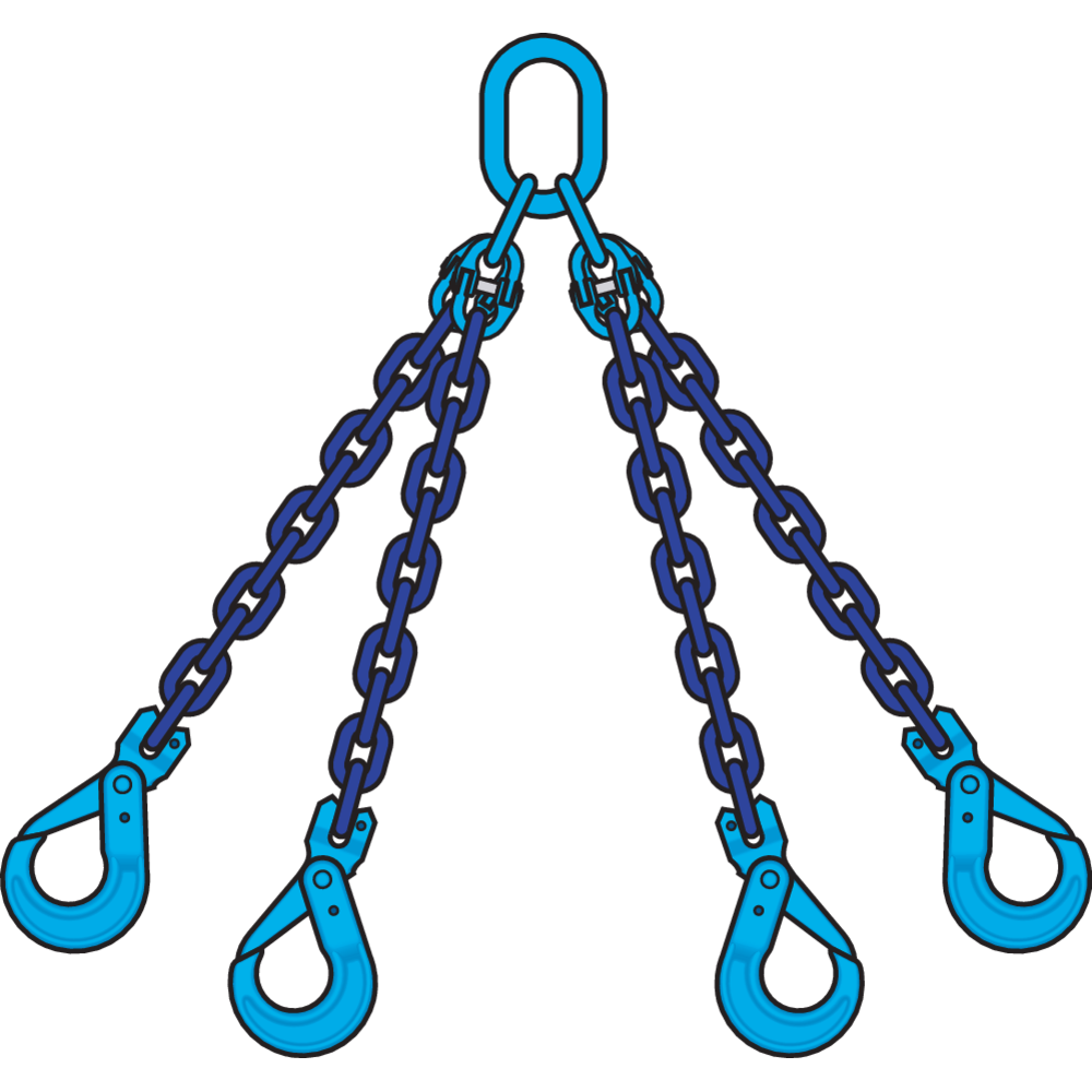 Design: Master link in one end and safety hook - clevis in each leg. Other combinations on demand.
