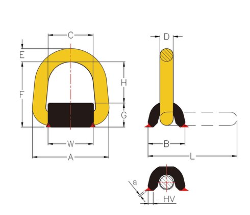 The eyes can be loaded with working load limit in all directions, pivots through 180°. Load rated parts are 100% magnaflux crack detected.