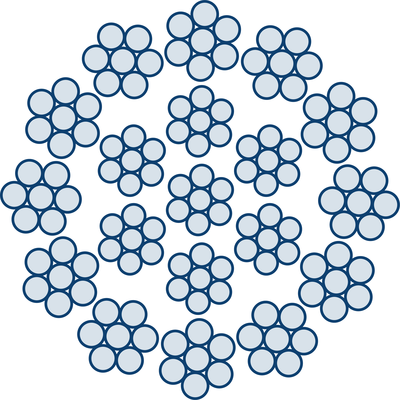 ROPETEX S18 is a semi-rotation resistant steel wire rope consisting of two layers of strands and a (steel) wire strand core. As the outer strands are closed in the opposite direction of the inner strands this rope is considered as semi-rotation resistant rope.