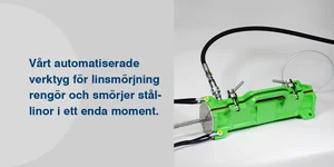 Vår service manager Joakim Hahne berättar om den effektiva metoden där rengöring och smörjning av stållinor sker i ett och samma moment.