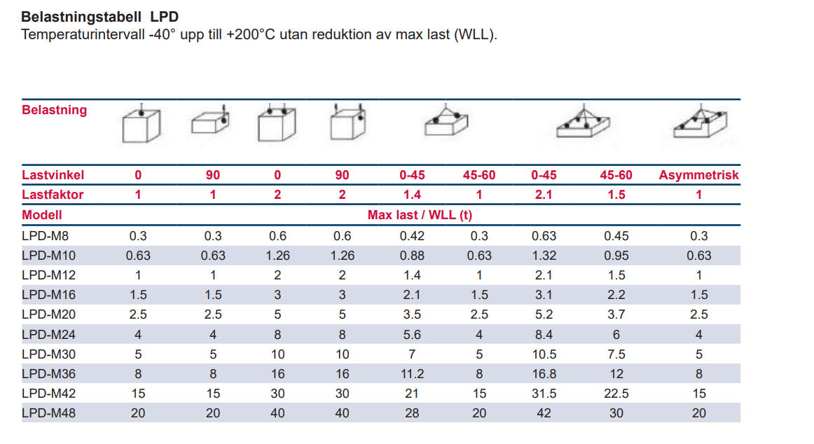 - Anmärkning: nnan användning, granska WLL-diagrammet för att välja rätt LPD för din applikation.