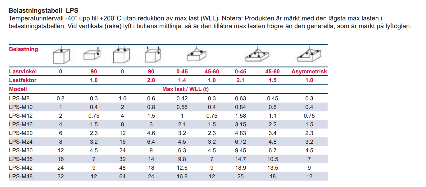 - Anmärkning: Innan användning, granska WLL-diagrammet för att välja rätt LPS för din applikation.